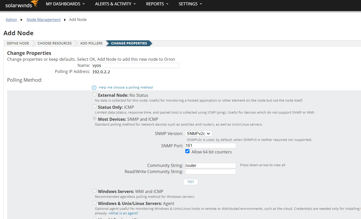 First prepare our VyOS router for connection to NMP. We have to set up the SNMP protocol and connectivity between the router and NMP.